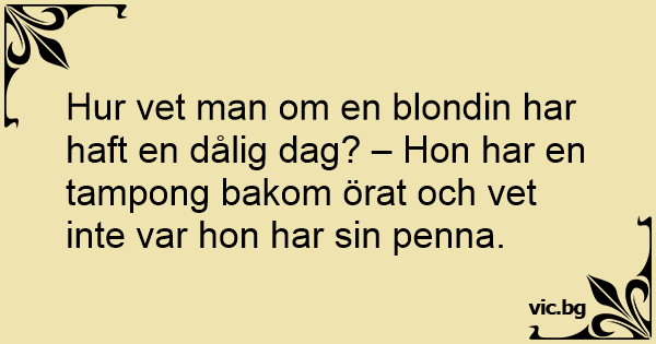 Hur vet man om en blondin har haft en dålig dag? – Hon har en tampong bakom örat och vet inte var hon har sin penna.