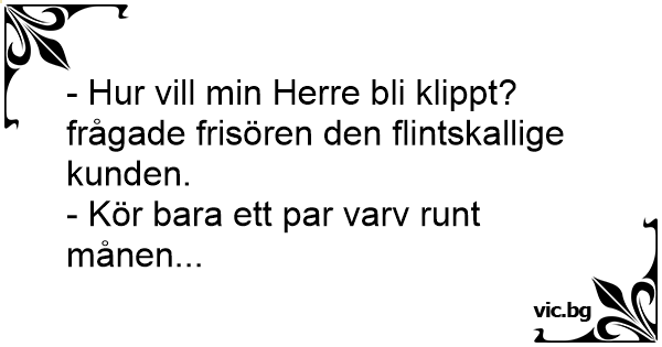 - Hur vill min Herre bli klippt? frågade frisören den flintskallige kunden.