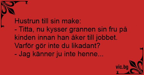 - Titta, nu kysser grannen sin fru på kinden innan han åker till jobbet. Varför gör inte du likadant?