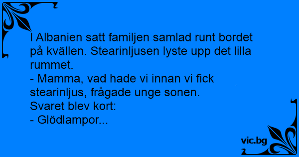 - Mamma, vad hade vi innan vi fiск stearinljus, frågade unge sonen.
