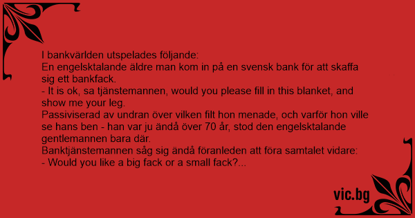 En engelsktalande äldre man kom in på en svensk bank för att skaffa sig ett bankfack.