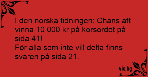 I den norska tidningen: Chans att vinna 10 000 kr på korsordet på sida 41!