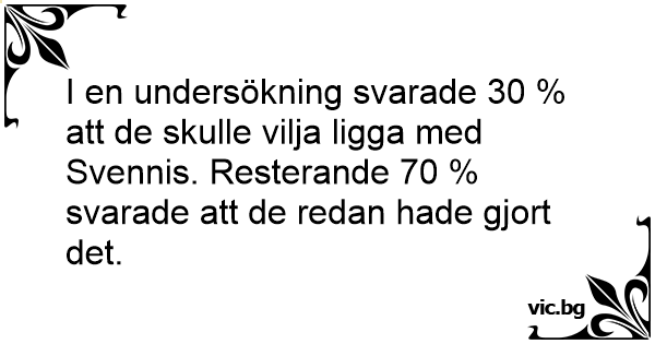 I en undersökning svarade 30 % att de skulle vilja ligga med Svennis. Resterande 70 % svarade att de redan hade gjort det.