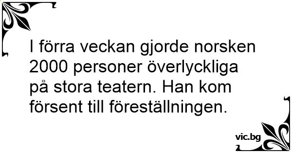 I förra veckan gjorde norsken 2000 personer överlyckliga på stora teatern. Han kom försent till föreställningen.