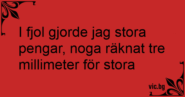 I fjol gjorde jag stora pengar, noga räknat tre millimeter för stora
