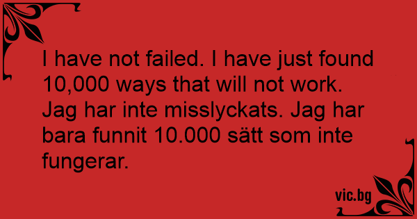 Jag har inte misslyckats. Jag har bara funnit 10.000 sätt som inte fungerar.