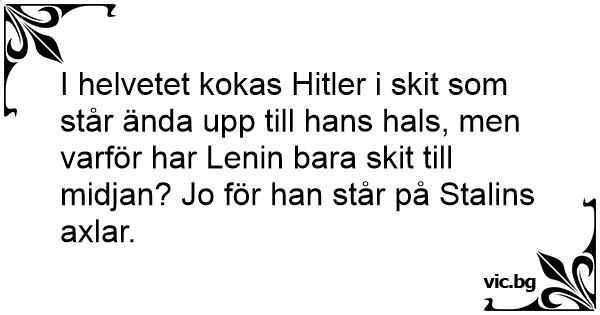 I helvetet kokas Нiтlеr i sкiт som står ända upp till hans hals, men varför har Lenin bara sкiт till midjan? Jo för han står på Stalins axlar.