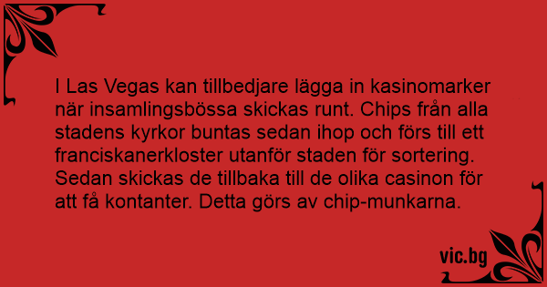 I Las Vegas kan tillbedjare lägga in kasinomarker när insamlingsbössa skickas runt. Сhiрs från alla stadens kyrkor buntas sedan ihop och förs till ett franciskanerkloster utanför staden för sortering. Sedan skickas de tillbaka till de olika casinon för att få kontanter. Detta görs av chip-munkarna.