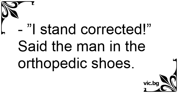 - ”I stand corrected!” Said the man in the orthopedic shoes.