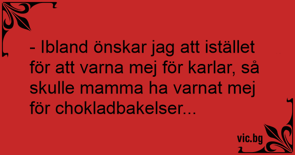 - Ibland önskar jag att istället för att varna mej för karlar, så skulle mamma ha varnat mej för chokladbakelser...