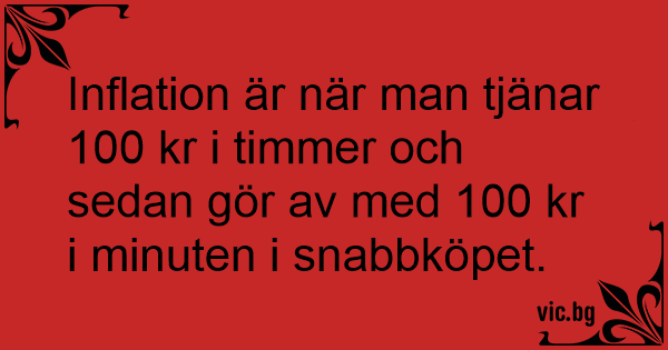 Inflation är när man tjänar 100 kr i timmer och sedan gör av med 100 kr i minuten i snabbköpet.