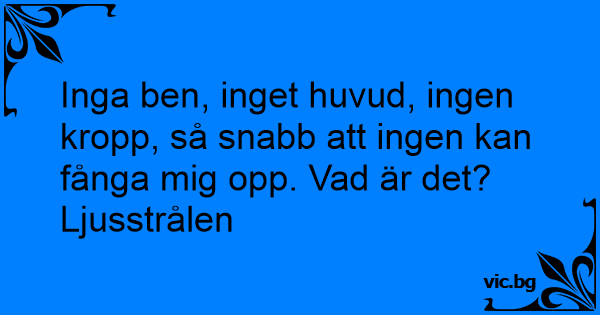 Inga ben, inget huvud, ingen kropp, så snabb att ingen kan fånga mig opp. Vad är det?