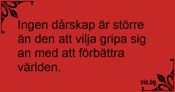 Ingen dårskap är större än den att vilja gripa sig an med att förbättra världen.