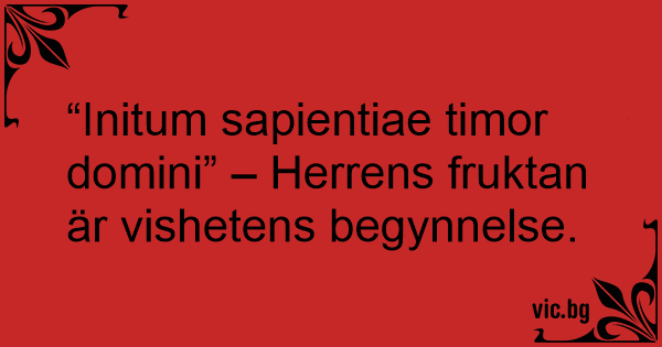 “Initum sapientiae timor domini” – Herrens fruktan är vishetens begynnelse.