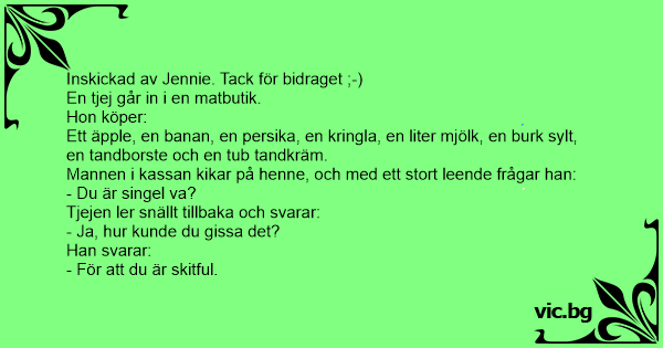 Mannen i kassan kikar på henne, och med ett stort leende frågar han:
