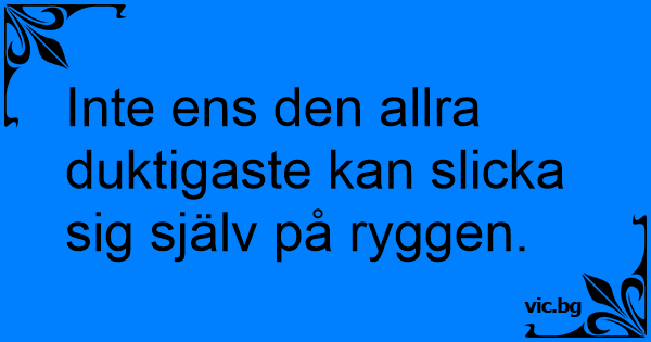 Inte ens den allra duktigaste kan slicka sig själv på ryggen.
