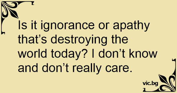 - What’s the difference between ignorance and apathy? - I don’t know, and I don’t care.