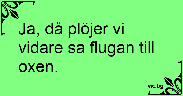 Ja, då plöjer vi vidare sa flugan till oxen.