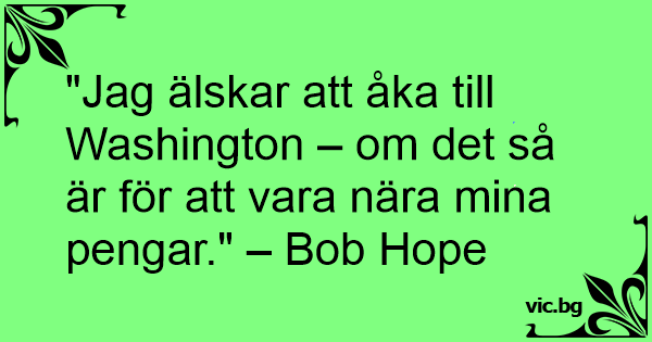 "Jag älskar att åka till Washington – om det så är för att vara nära mina pengar." – Bob Hope