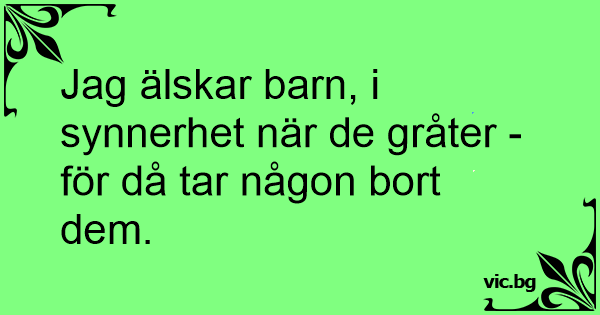 Jag älskar barn, i synnerhet när de gråter - för då tar någon bort dem.