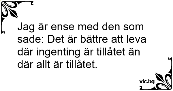 Jag är ense med den som sade: Det är bättre att leva där ingenting är tillåtet än där allt är tillåtet.