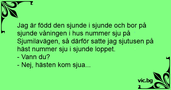 Jag är född den sjunde i sjunde och bor på sjunde våningen i hus nummer sju på Sjumilavägen, så därför satte jag sjutusen på häst nummer sju i sjunde loppet.