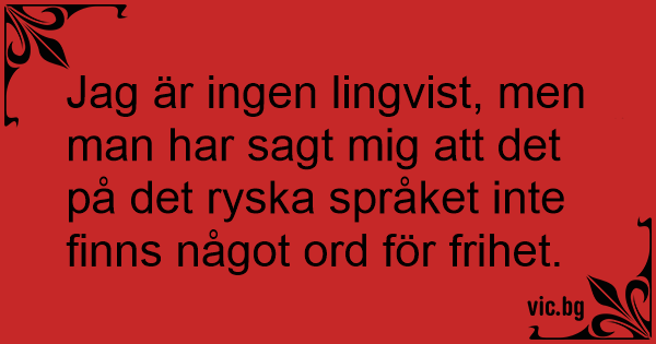 Jag är ingen lingvist, men man har sagt mig att det på det ryska språket inte finns något ord för frihet.