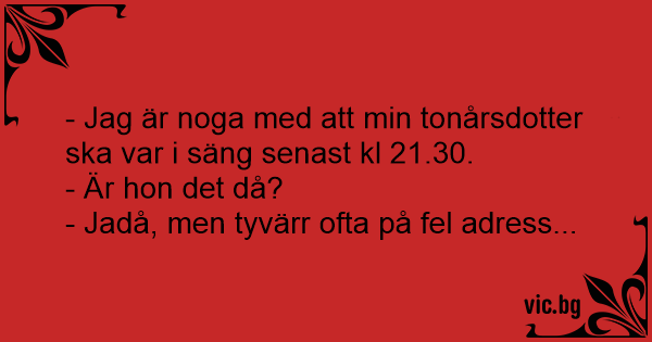 - Jag är noga med att min tonårsdotter ska var i säng senast kl 21.30.