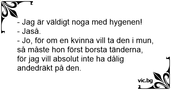 - Jo, för om en kvinna vill ta den i mun, så måste hon först borsta tänderna, för jag vill absolut inte ha dålig andedräkt på den.