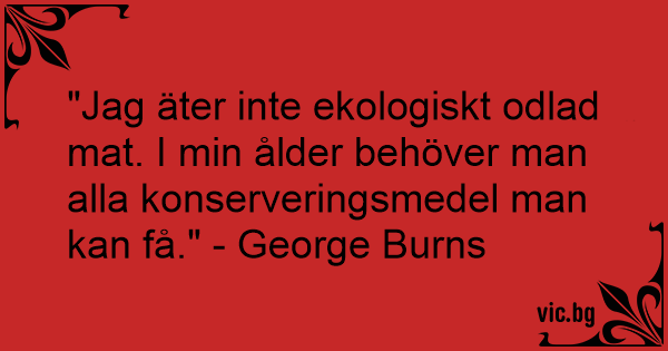 "Jag äter inte ekologiskt odlad mat. I min ålder behöver man alla konserveringsmedel man kan få." - George Burns