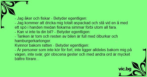 - Jag åker och fiskar - Betyder egentligen: