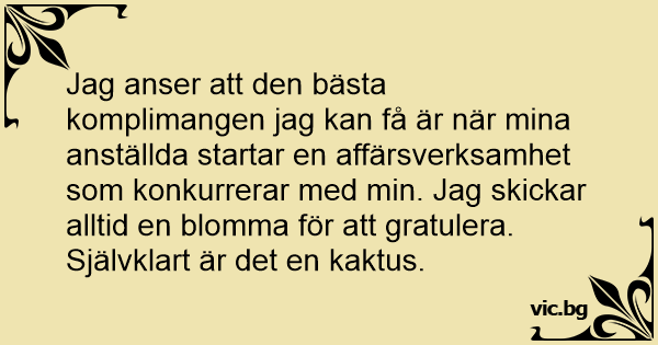 Jag anser att den bästa komplimangen jag kan få är när mina anställda startar en affärsverksamhet som konkurrerar med min. Jag skickar alltid en blomma för att gratulera. Självklart är det en kaktus.