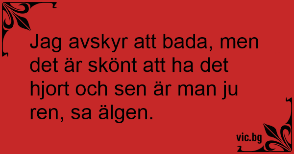 Jag avskyr att bada, men det är skönt att ha det hjort och sen är man ju ren, sa älgen.
