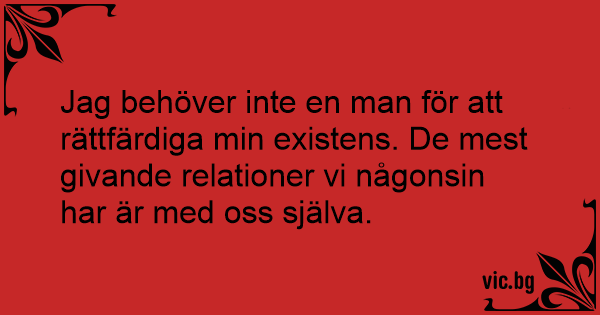 Jag behöver inte en man för att rättfärdiga min existens. De mest givande relationer vi någonsin har är med oss själva.