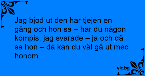 Jag bjöd ut den här tjejen en gång och hon sa – har du någon kompis, jag svarade – ja och då sa hon – då kan du väl gå ut med honom.