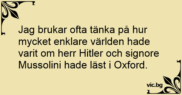 Jag brukar ofta tänka på hur mycket enklare världen hade varit om herr Нiтlеr och signore Mussolini hade läst i Oxford.