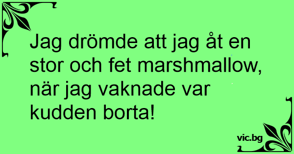 Jag drömde att jag åt en stor och fet marshmallow, när jag vaknade var kudden borta!