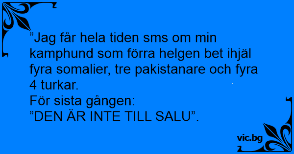 ”Jag får hela tiden sms om min kamphund som förra helgen bet ihjäl fyra somalier, tre pakistanare och fyra 4 turkar.