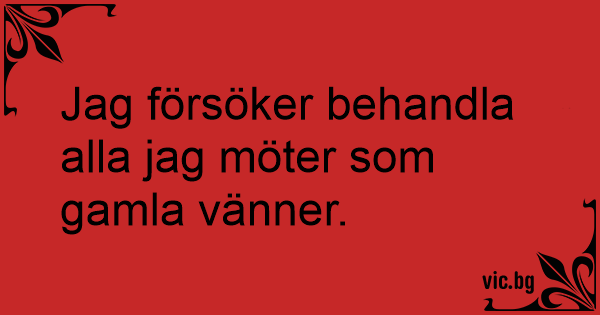 Jag försöker behandla alla jag möter som gamla vänner.