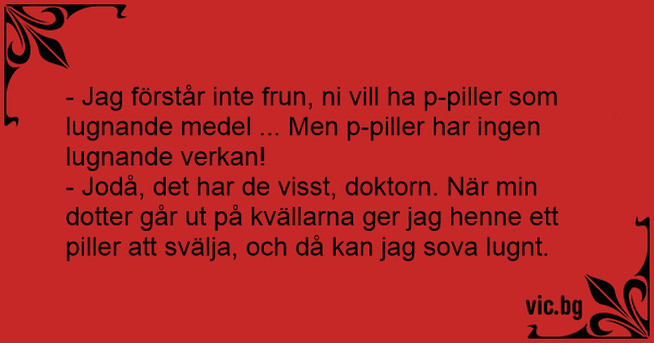 - Jodå, det har de visst, doktorn. När min dotter går ut på kvällarna ger jag henne ett piller att svälja, och då kan jag sova lugnt.