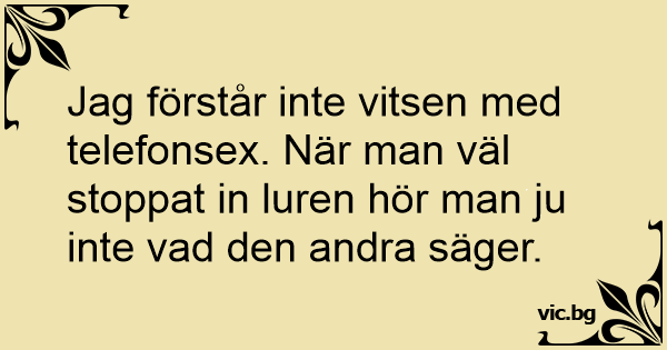 Jag förstår inte vitsen med telefonsex. När man väl stoppat in luren hör man ju inte vad den andra säger.