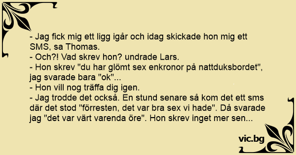 - Hon skrev "du har glömt sеx enkronor på nattduksbordet", jag svarade bara "ok"...