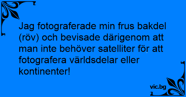 Jag fotograferade min frus bakdel (röv) och bevisade därigenom att man inte behöver satelliter för att fotografera världsdelar eller kontinenter!