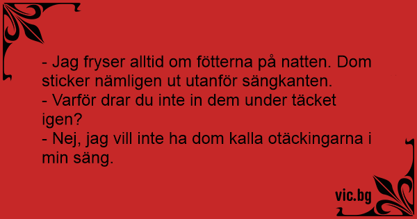 - Nej, jag vill inte ha dom kalla otäckingarna i min säng.