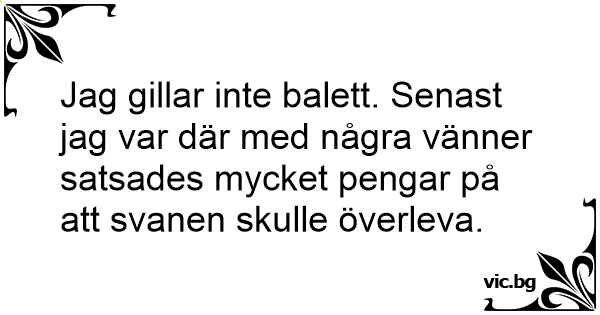 Jag gillar inte balett. Senast jag var där med några vänner satsades mycket pengar på att svanen skulle överleva.