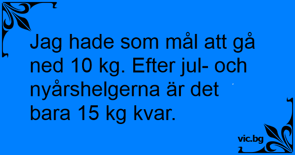 Jag hade som mål att gå ned 10 kg. Efter jul- och nyårshelgerna är det bara 15 kg kvar.
