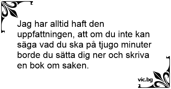 Jag har alltid haft den uppfattningen, att om du inte kan säga vad du ska på tjugo minuter borde du säтта dig ner och skriva en bok om saken.