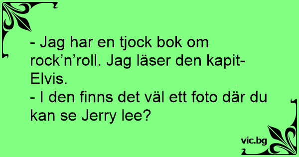 - Jag har en tjock bok om rock’n’roll. Jag läser den kapit-Elvis.