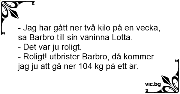 - Jag har gått ner två kilo på en vecka, sa Barbro till sin väninna Lotta.