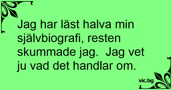 Jag har läst halva min självbiografi, resten skummade jag. Jag vet ju vad det handlar om.